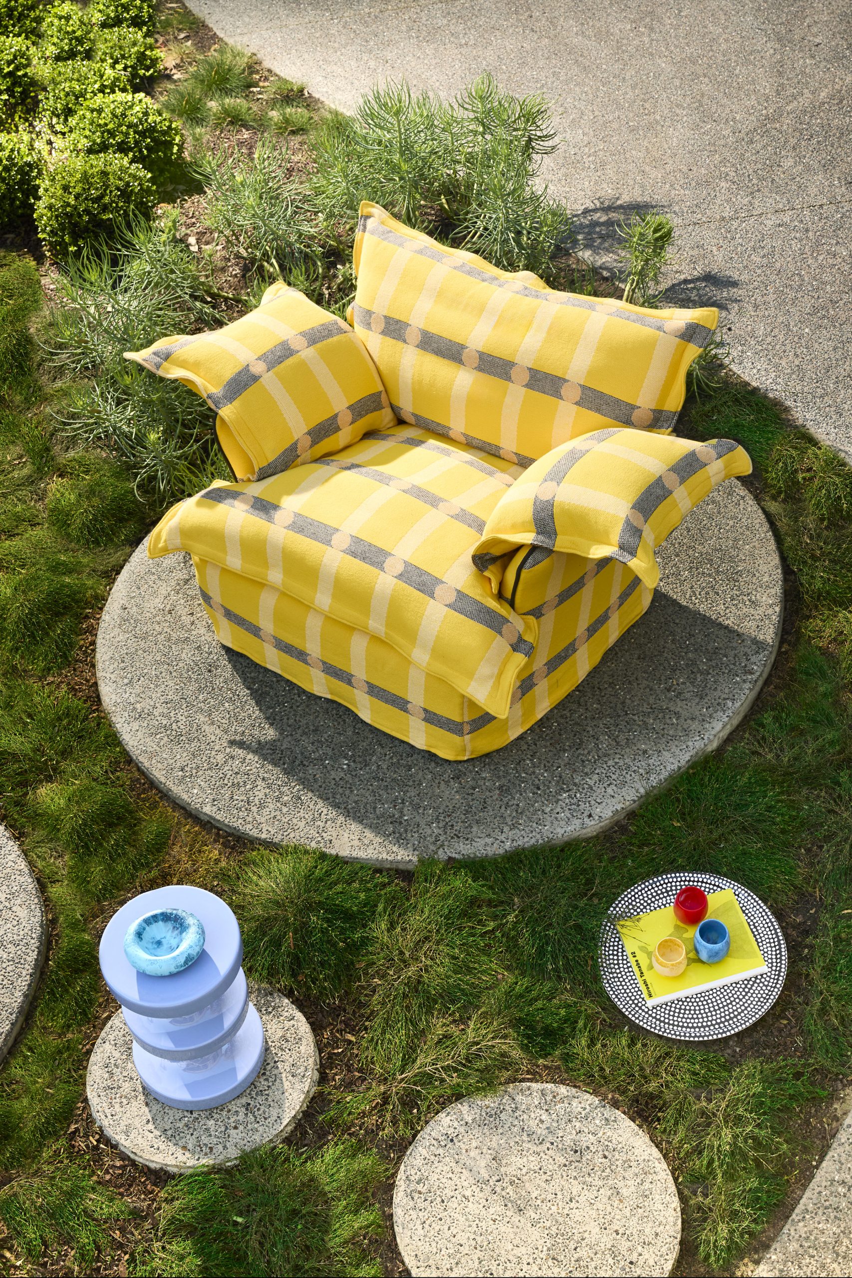 Among the designs are Mayen by Kleopatra Moursela, evoking alpine landscapes through geometric harmony; Gate and Japan by Nathalie Du Pasquier and George Sowden, founders of the Memphis movement; Rimini One by Sophie Probst, a modern celebration of weaving and colour; Senegalese Patchwork, exclusive hand-dyed cottons; Karo by ZigZag Zurich, a vibrant pink checkerboard; and Shake Your Move by Milanese designer Federico Angi, which combines precision with playful rhythm.