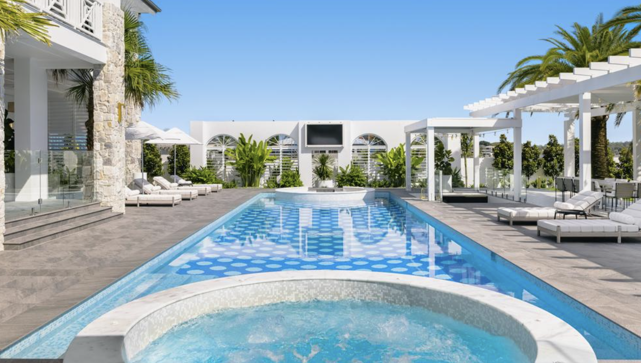The newest addition to the trophy market is The Estate in Tallai, listed by former AFL player turned tech entrepreneur Brad Moran and marketed by Kollosche. Carved into the mountainside of its 8,888 sqm site, the ultra-luxury residence makes a statement from arrival, with a circular driveway of 75,000 hand-laid cobblestones and a five-element fountain finished in 24-carat gold mosaics.