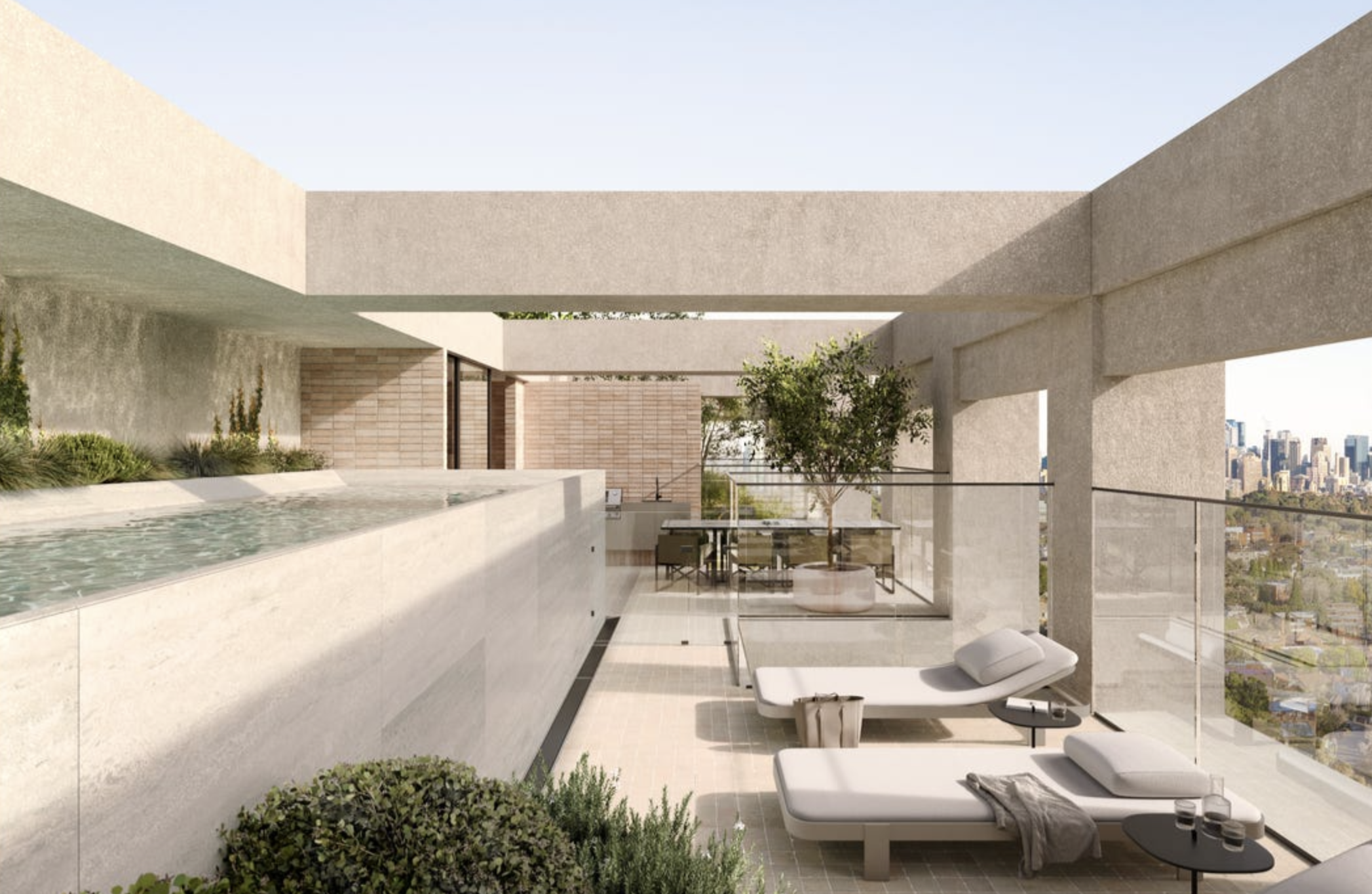 The four-bedroom penthouse atop their new development The Regent Fitzroy, will offer sweeping views from every one of its rooms. It will have four bedrooms and two living areas, designed by Studio Tate for multi-generational living.