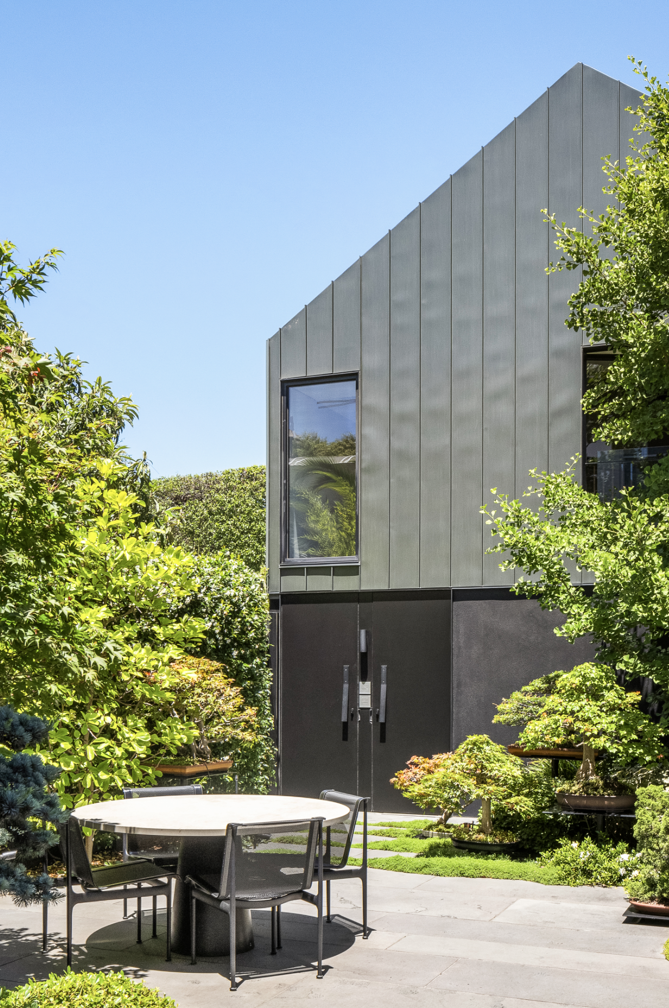 The contemporary home features gallery-sized entertainment zones with dramatic high ceilings, vertical gardens and landscaped courtyards that allow for oodles of natural light and private gatherings inside and out.