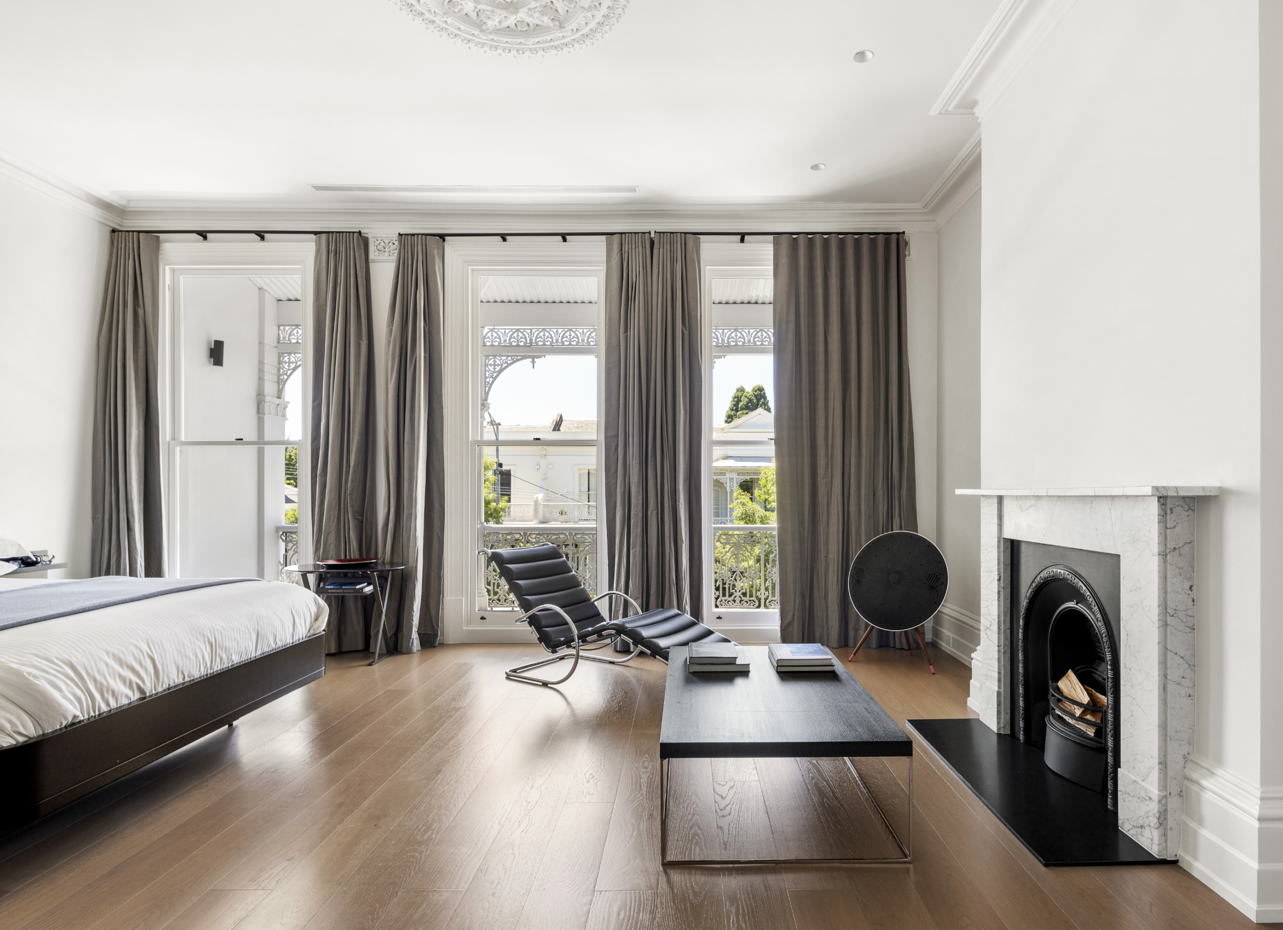 In a pocket of East Melbourne where heritage overlays protect the character of the streetscape, the Victorian terrace was carefully reimagined to balance period elegance with contemporary comfort. Behind its striking white façade, Carr and her team created a series of layered spaces where period detail and modern function co-exist.