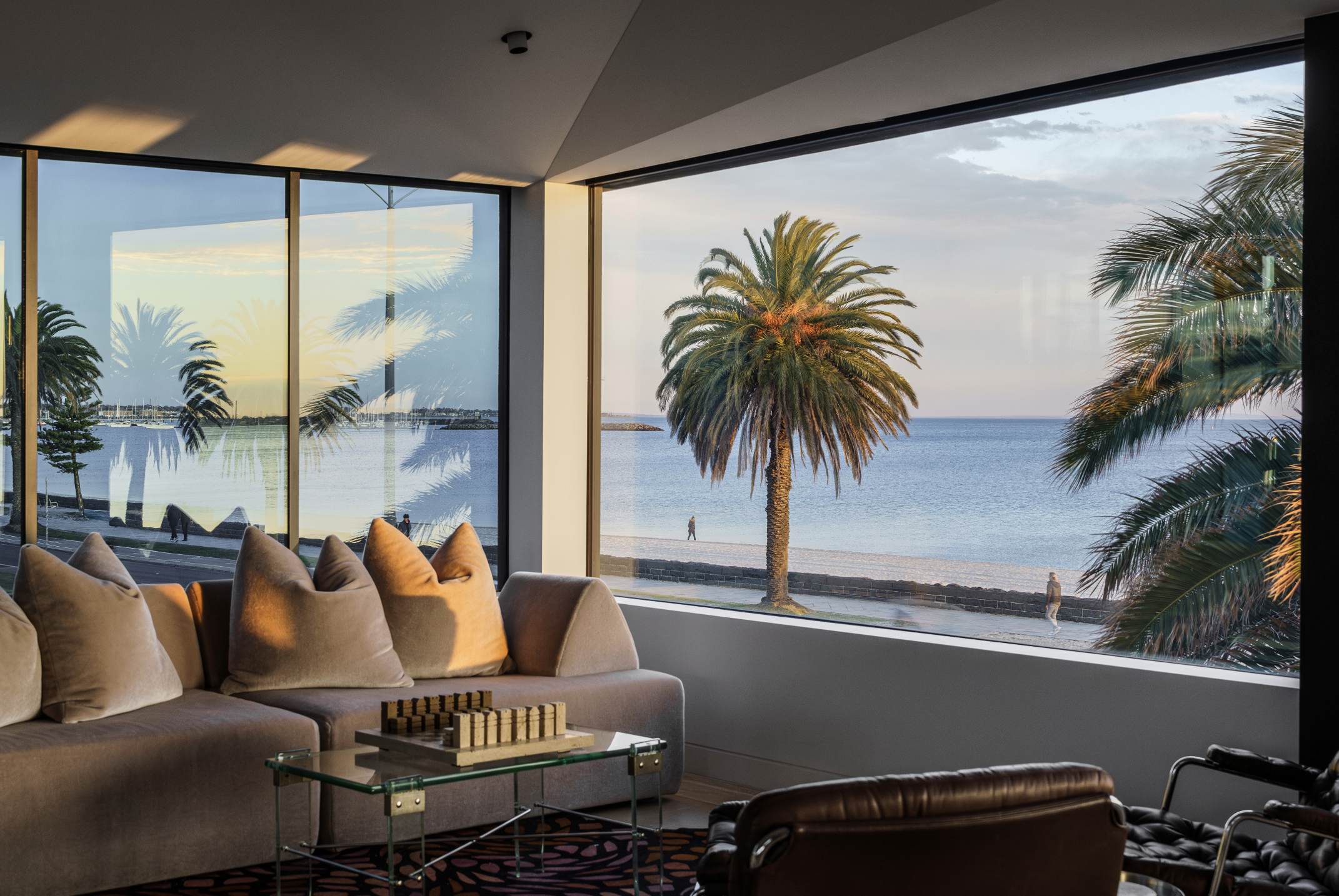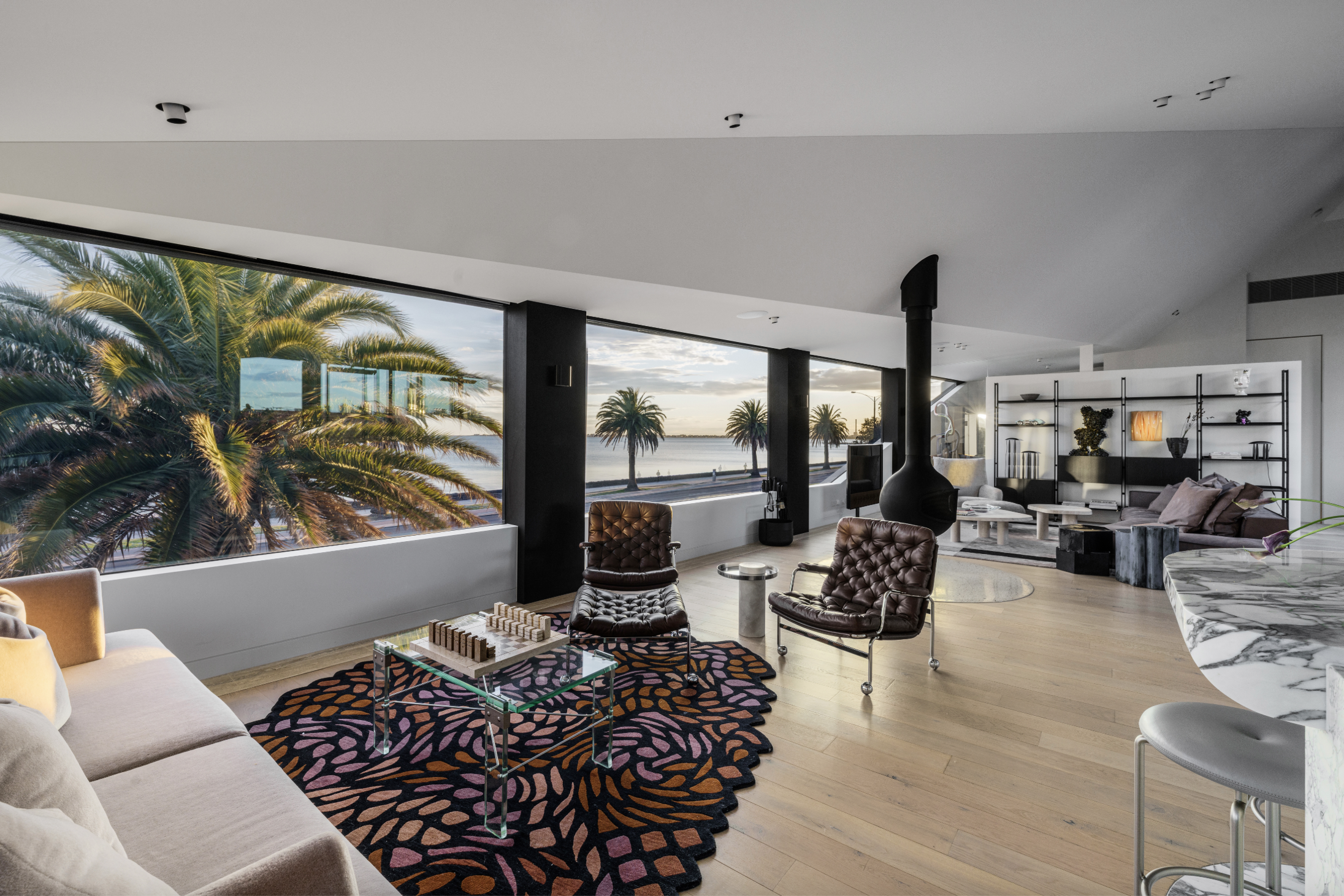 Panorama House is where contemporary art meets bayside luxury. This award-winning five-bedroom Middle Park home boasts panoramic Port Phillip Bay views.