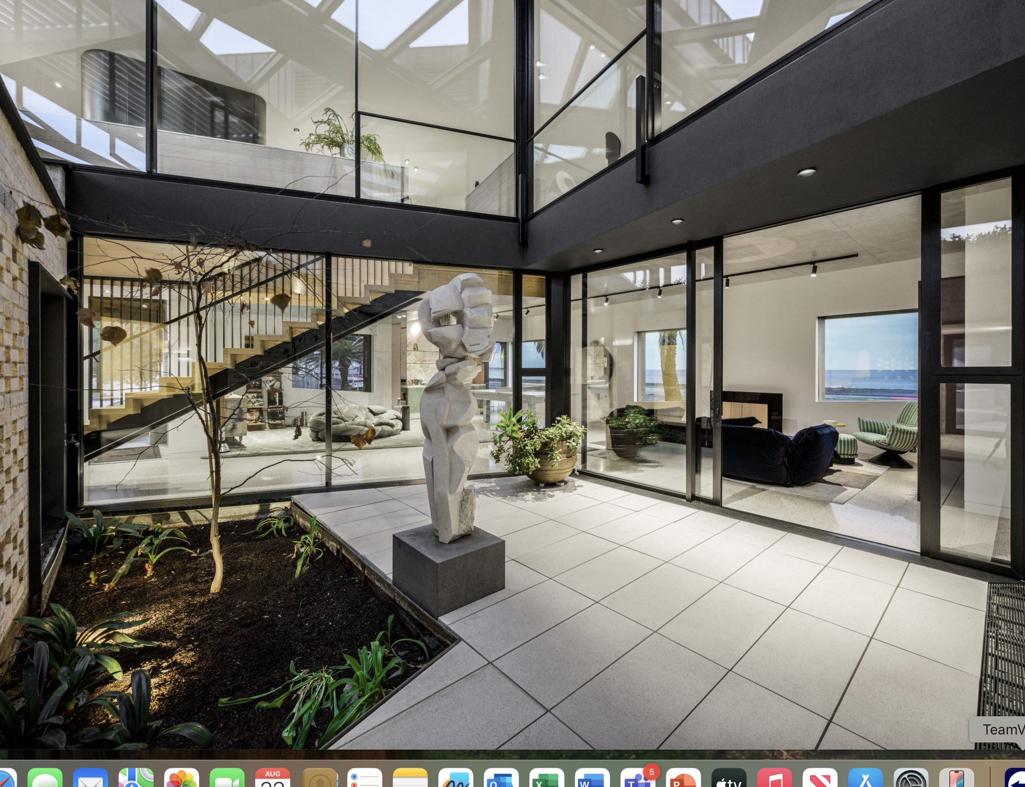Surrounded by a sea of traditional yet classically renovated Federation bungalows, the 21st century building is a statement piece in a coveted waterfront location. The home’s own website declares it is a “design that does’t shout. It simply belongs.”