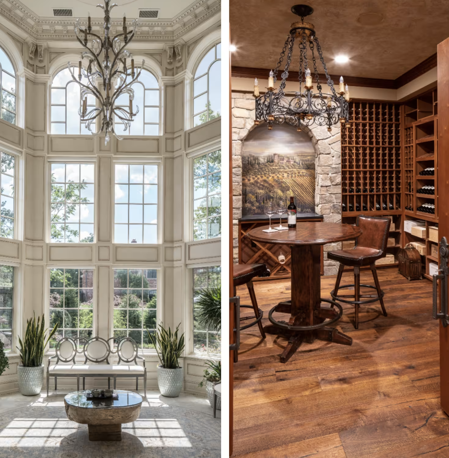 “It has soaring ceilings, custom fireplaces and bridal staircases,” she said. “In one of the powder rooms, there is glass-beaded wallpaper.”